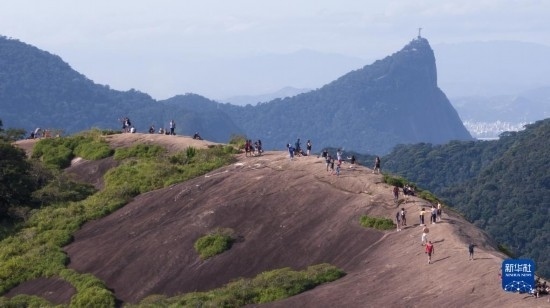 5月21日,游客在巴西里約熱內(nèi)盧蒂茹卡國家公園游覽(無人機(jī)照片)。