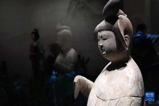 這是在西安博物院《長(zhǎng)安有故里——絲路少年大唐行》展覽上展出的女立俑(5月22日攝)。
