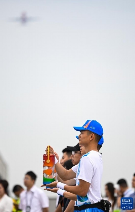 6月8日,在成都天府國際機(jī)場,“中國民航英雄機(jī)長”劉傳健執(zhí)飛護(hù)送成都大運(yùn)會火炬火種的航班。新華社記者 王曦 攝