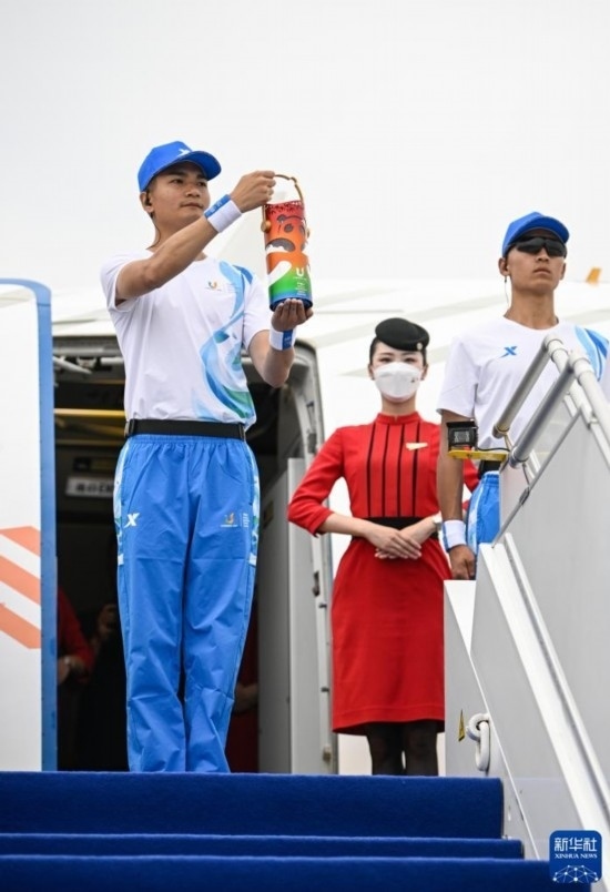 作為大運(yùn)會官方合作伙伴,四川航空承擔(dān)此次火炬?zhèn)鬟f火種航空運(yùn)輸保障任務(wù)。當(dāng)日,“大運(yùn)號”主題彩繪飛機(jī)執(zhí)行此次任務(wù),并由“中國民航英雄機(jī)長”劉傳健負(fù)責(zé)執(zhí)飛本次航班。在火種護(hù)衛(wèi)隊(duì)21名隊(duì)員的護(hù)送下,火種飛赴火炬?zhèn)鬟f首站城市——北京。從6月10日到7月28日,大運(yùn)火炬將承載著大運(yùn)精神,奏響“奮斗青春 放飛夢想”的成都大運(yùn)會序章。
