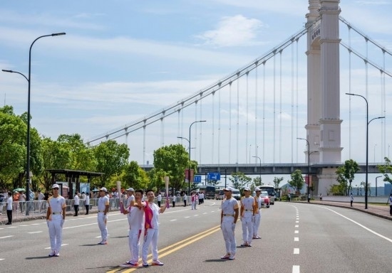 杭州第19屆亞運(yùn)會舟山站火炬?zhèn)鬟f專項組常務(wù)副組長李進(jìn)城介紹,整個線路全程融入了海、港、船、橋等多種海洋元素,通過現(xiàn)代與歷史的交錯融合、文旅味與山海味的交相輝映,全方位展現(xiàn)了“海上花園城 自由貿(mào)易港”的大美場景。