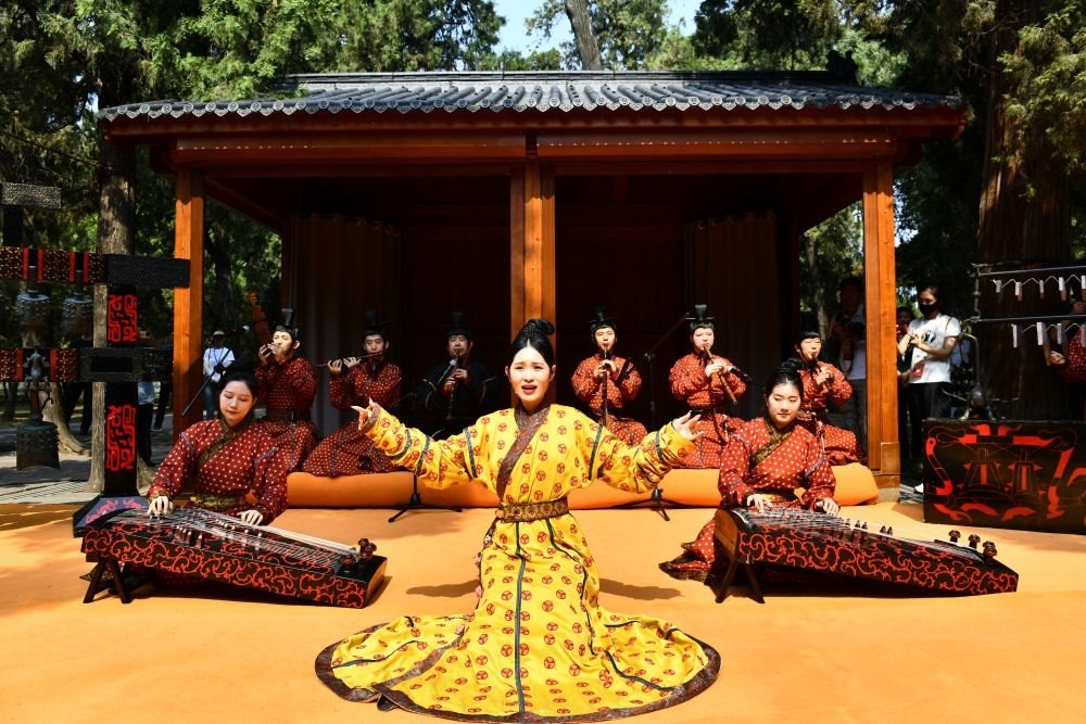 2023年6月27日,在曲阜孔廟,孔子博物館禮樂傳習所的工作人員進行以《詩經(jīng)》為主題的雅樂表演。新華社記者 郭緒雷 攝