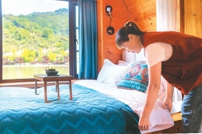 或面朝大海,或棲居山間,在很多人眼中,民宿管家的工作正是大家追尋的“詩與遠方”。實際上,孔杰表示,民宿管家的日常工作綜合性強,干起來并不輕松。她舉例說,除了提供基礎(chǔ)的住宿服務(wù),如辦理入住、接待、清潔、安排用餐等,還要為住客規(guī)劃出行路線、推薦游玩景點,如怎么爬山戲水、景區(qū)數(shù)十處特色體驗館如何游玩等。