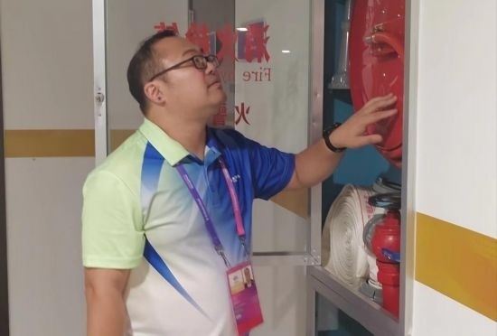 王偉亮駐點(diǎn)在杭州黃龍?bào)w育中心體育場(chǎng),根據(jù)足球賽開賽時(shí)間的特點(diǎn),他一般是下午17:30以前到崗,先是對(duì)黃龍?bào)w育中心體育場(chǎng)開展賽前風(fēng)險(xiǎn)查勘,沿著場(chǎng)館外圍觀眾通行通道對(duì)消防設(shè)施、排水設(shè)施、通風(fēng)設(shè)施、觀眾席出入口、無(wú)障礙通行設(shè)施以及懸空固定設(shè)施逐一進(jìn)行檢查,進(jìn)行風(fēng)險(xiǎn)排除。在賽中和賽后,他也要持續(xù)巡場(chǎng),對(duì)因觀眾進(jìn)場(chǎng)導(dǎo)致發(fā)生的新的風(fēng)險(xiǎn)情況予以反饋和處置,真正結(jié)束工作已經(jīng)要到凌晨0:30左右。如今亞運(yùn)已經(jīng)開幕,多場(chǎng)比賽均達(dá)到場(chǎng)館的最大負(fù)荷,王偉亮長(zhǎng)期處于精神高度集中、體力臨近上限的狀態(tài)。但是他沒有絲毫松懈,遇到突發(fā)情況時(shí),依舊會(huì)第一個(gè)沖上去提供幫助。
