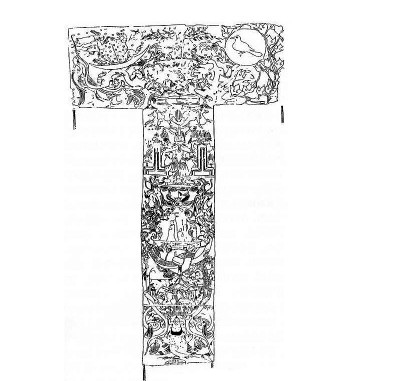 解讀出漢墓帛畫中殘月所蘊含的時間密碼,再看整幅T形帛畫。我們看到馬王堆漢墓帛畫形制上最重要的特征,就是非常特殊的T字形狀。中央由三張絹布整幅拼成,中軸描繪了天、承載墓主人魂魄的魂車和地下世界三部分。這樣的三段模式在漢畫像石中并不少見。一如曾部川寬指出的那樣,真正造成這個T字形特殊形狀的,是在中軸的左右增加了描繪太陽和描繪月亮的部分。我想之所以特地增加出日月這兩部分,一定是因為有特別的需要。那么,這需要是什么呢?當(dāng)我們解讀清楚在帛畫上段左側(cè)描繪的月世界的殘月所蘊含的特殊時間密碼,再去看右側(cè)對稱處特地畫出九個太陽組成的畫面,我們自然會想到《山海經(jīng)》中扶桑木與十日的神話故事,與蟾蜍、玉兔、殘月等圖像展示的主題一樣,這應(yīng)該同樣是一個與時間循環(huán)密切相關(guān)的故事主題。日與月在這里并不單純是代表性的天文標(biāo)志物。他們展示的都是時間的循環(huán),和在時間循環(huán)中死而復(fù)生的主題。本文就此止筆于月相的分析。有關(guān)太陽的循環(huán),以后再展開討論。