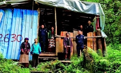 山南市洛扎縣拉郊邊境派出所執(zhí)勤點里,民警與群眾合影。本報記者 畢玉才攝