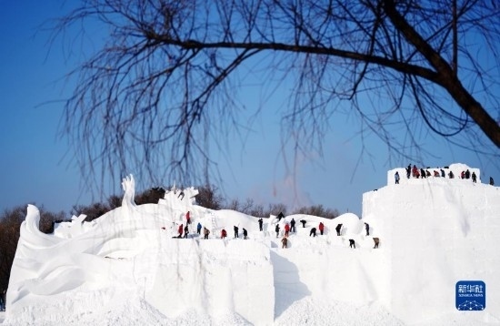 目前,第36屆哈爾濱太陽(yáng)島國(guó)際雪雕藝術(shù)博覽會(huì)在緊張建設(shè)中,雪雕師加緊進(jìn)行雕刻作業(yè)。本屆太陽(yáng)島“雪博會(huì)”總用雪量15萬(wàn)立方米,主塑用雪量達(dá)3.5萬(wàn)立方米。