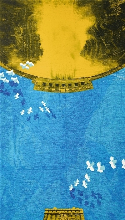 新時代長江氣象萬千。在重慶市文化和旅游發(fā)展委員會、重慶市文學(xué)藝術(shù)界聯(lián)合會等單位主辦的“2022同源·同向——長江流域十三省市自治區(qū)美術(shù)作品邀請展”上,龐茂琨油畫《輝耀九龍》、徐君華粉畫《浦江之夢》等作品,以充滿詩意的語言展現(xiàn)了日新月異的城鄉(xiāng)面貌與豐富多彩的現(xiàn)實生活。近年來,一批重大工程的實施,為百姓生活帶來便利,使長江流域涌動活力。一些美術(shù)工作者充分發(fā)揮視覺藝術(shù)的力量感,反映長江流域建設(shè)成就。比如,賀思恩版畫《蓄勢——破譯雅礱密碼》依托絲網(wǎng)版畫色彩表現(xiàn)力較強(qiáng)的藝術(shù)特色,以俯瞰視角,展現(xiàn)了長江流域水電站的時代風(fēng)采。