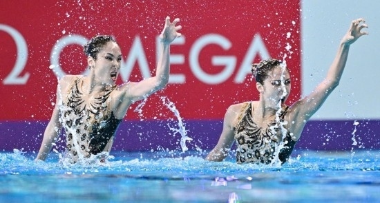 2月6日,中國隊(duì)教練張曉歡(左)、安娜在場邊觀賽。當(dāng)日,2024年世界游泳錦標(biāo)賽花樣游泳集體技術(shù)自選決賽在卡塔爾多哈舉行,中國隊(duì)獲得冠軍。新華社記者 夏一方 攝
