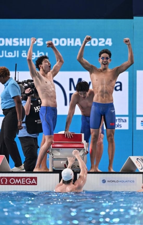 11日,中國(guó)農(nóng)歷甲辰龍年大年初二,多哈世界游泳錦標(biāo)賽游泳項(xiàng)目第一個(gè)比賽日,潘展樂和隊(duì)友季新杰、張展碩、王浩宇在男子4×100米自由泳接力決賽中以3分11秒08贏得金牌,為中國(guó)男子游泳創(chuàng)造歷史!中國(guó)游泳此前還從未獲得過世錦賽或者奧運(yùn)會(huì)的男子接力冠軍。