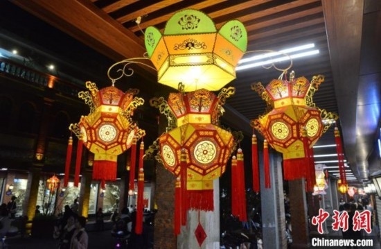 圖為2月20日晚,民眾在泉州古城內(nèi)觀賞花燈。中新網(wǎng)記者 張斌 攝