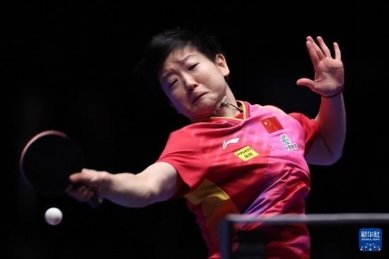 2月23日,孫穎莎在第一盤比賽中回球。她3比0戰(zhàn)勝法國(guó)隊(duì)選手帕瓦德。新華社記者 張濤 攝