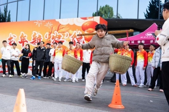 3月11日,學生在湖南農(nóng)業(yè)大學參加趣味農(nóng)耕運動游戲。