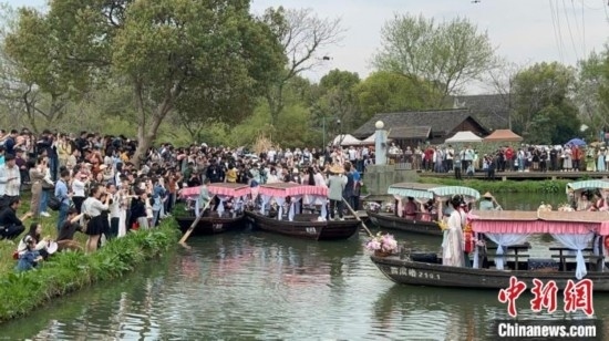 為了給游客提供更多元化的傳統(tǒng)文化體驗(yàn),此次花朝節(jié)期間,游客除了入園踏春賞花外,還可以拍攝綠堤上的美陳展示、看三深大會(huì)堂里的漫畫展、逛蔣村慢生活街區(qū)的文創(chuàng)市集和河渚街的花朝市集、體驗(yàn)搖櫓船上的“宋韻花朝”套餐等,更可以在每個(gè)周末及節(jié)假日下午,與春天代言人“賣花郎”互動(dòng)、跟著美麗的花神巡游、參與西溪水鄉(xiāng)婚禮互動(dòng)表演,解鎖春日限定的浪漫。(王題題)