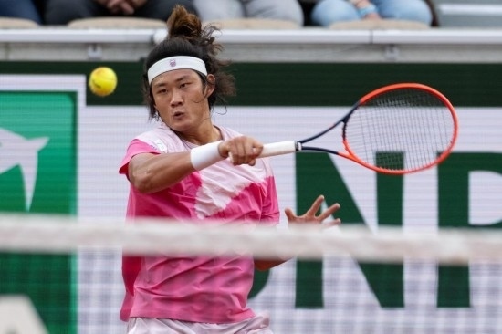 5月31日,張之臻在2024法國(guó)網(wǎng)球公開(kāi)賽男單第三輪比賽中回球。新華社記者 孟鼎博 攝
