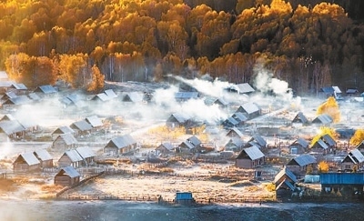 晨光透過(guò)薄霧,灑向布爾津縣禾木村這座古老的村落。裊裊炊煙從尖頂小木屋上升起,蒼鷹在空中盤(pán)旋,遠(yuǎn)處的白樺林連綿不絕,溫柔環(huán)抱著禾木村。