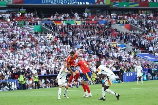 下半場(chǎng)開場(chǎng)德國(guó)隊(duì)就換上維爾茨和安德里希。第51分鐘,西班牙隊(duì)亞馬爾右路帶球進(jìn)入禁區(qū)后橫傳中路,拍馬趕到的奧爾莫推射破門,為本隊(duì)先拔頭籌。此后德國(guó)隊(duì)換上中鋒菲爾克魯格,與哈弗茨形成雙前鋒,逐漸占據(jù)場(chǎng)面主動(dòng)。第76分鐘,菲爾克魯格禁區(qū)內(nèi)搶點(diǎn)射門擊中立柱。