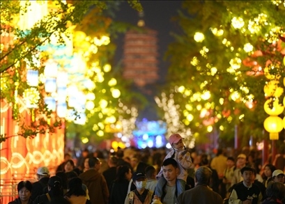 今年中秋假期,“京彩燈會”吸引了超過12萬名游客。國慶假期前4天,游客量達7萬余人。除了大飽眼福,燈會還設(shè)立150余家特色商鋪,覆蓋老字號、非遺、文創(chuàng)、餐飲美食等,豐富游客體驗。多家知名餐飲企業(yè)在燈會擺攤設(shè)點為游客服務(wù),賞燈之余還能享受大廚現(xiàn)做的星級美食。