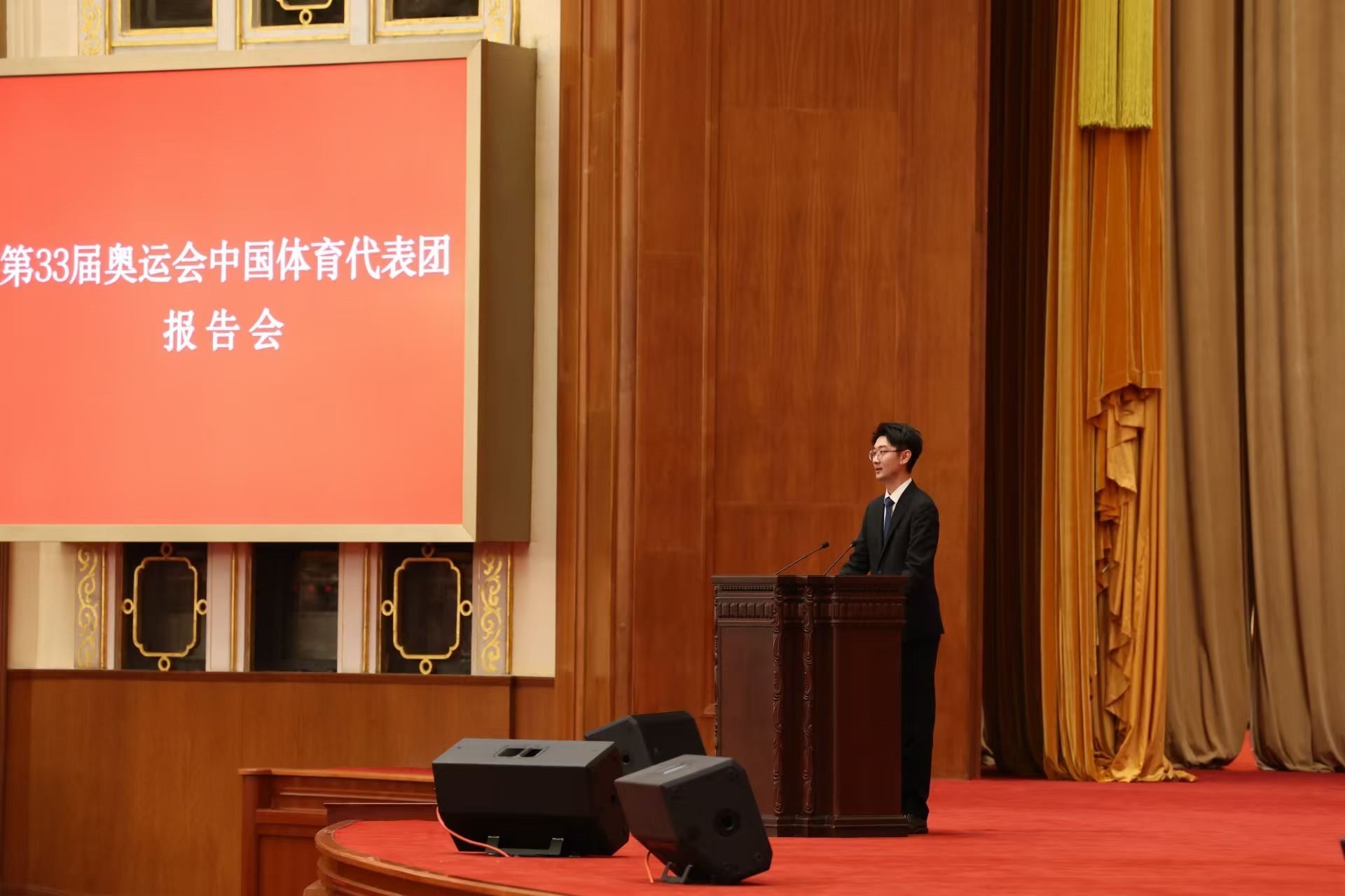 11月15日下午,中央宣傳部、國家體育總局在人民大會堂舉行第三十三屆奧運會中國體育代表團報告會。人民日報社體育部記者孫龍飛作為報告團成員,講述了自己在一線報道巴黎奧運會的經歷。