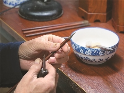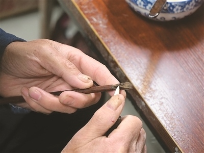 “無(wú)論是制作哪一類(lèi)品種的宣筆,要能實(shí)現(xiàn)‘尖、齊、圓、健’均屬不易,需經(jīng)歷選料、水盆、制桿、裝套等多道工序、100多個(gè)環(huán)節(jié)?!币灾茥U為例,佘征軍介紹,工人需要先將筆桿磨平,再用工具在筆桿上挖出裝筆頭的洞,這套工藝沒(méi)有特定的參數(shù)可參考,全憑工人的手上感覺(jué)。“學(xué)徒入行,一般3到5年才能完整學(xué)會(huì)宣筆制造流程;要想做出一支優(yōu)秀的宣筆,至少10到12年的學(xué)習(xí)實(shí)踐;而要想學(xué)‘精’,需要一輩子的時(shí)間。”佘征軍說(shuō)。