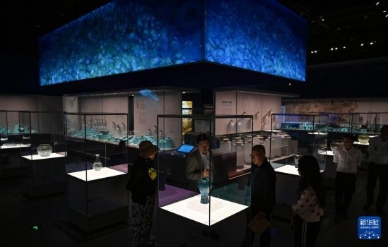 3月20日,游客在位于瓊海的中國(guó)(海南)南海博物館參觀南海西北陸坡一二號(hào)沉船考古成果特展。