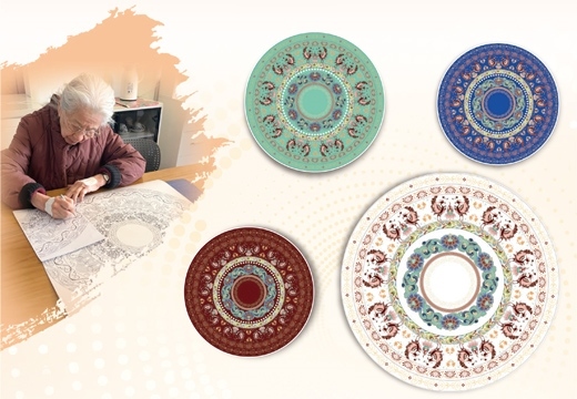 圖為常沙娜和她設計的紋樣。