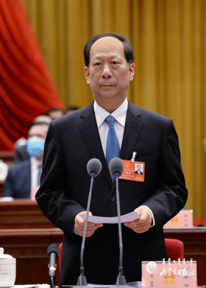 1月26日上午,自治區(qū)主席布小林代表自治區(qū)政府向大會(huì)作政府工作報(bào)告。內(nèi)蒙古日?qǐng)?bào)記者 袁永紅 攝