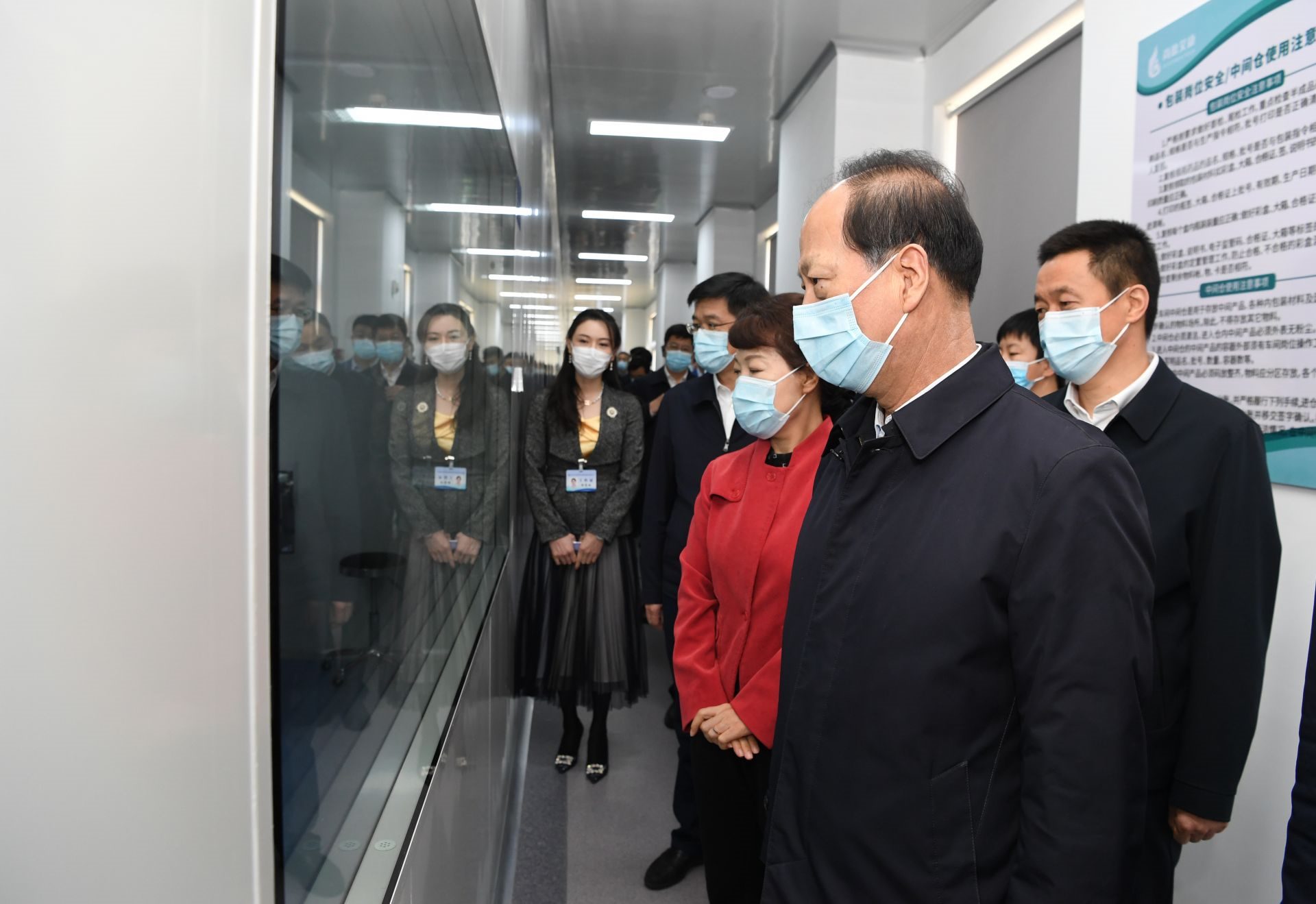 4月8日,自治區(qū)黨委書記、人大常委會(huì)主任石泰峰,自治區(qū)黨委副書記、自治區(qū)主席王莉霞,與參加自治區(qū)推進(jìn)高質(zhì)量發(fā)展重大項(xiàng)目建設(shè)動(dòng)員大會(huì)代表一起觀摩尚德艾康藥業(yè)有限公司抗癌藥物研發(fā)及中試基地項(xiàng)目。內(nèi)蒙古日?qǐng)?bào)社融媒體記者 袁永紅 攝