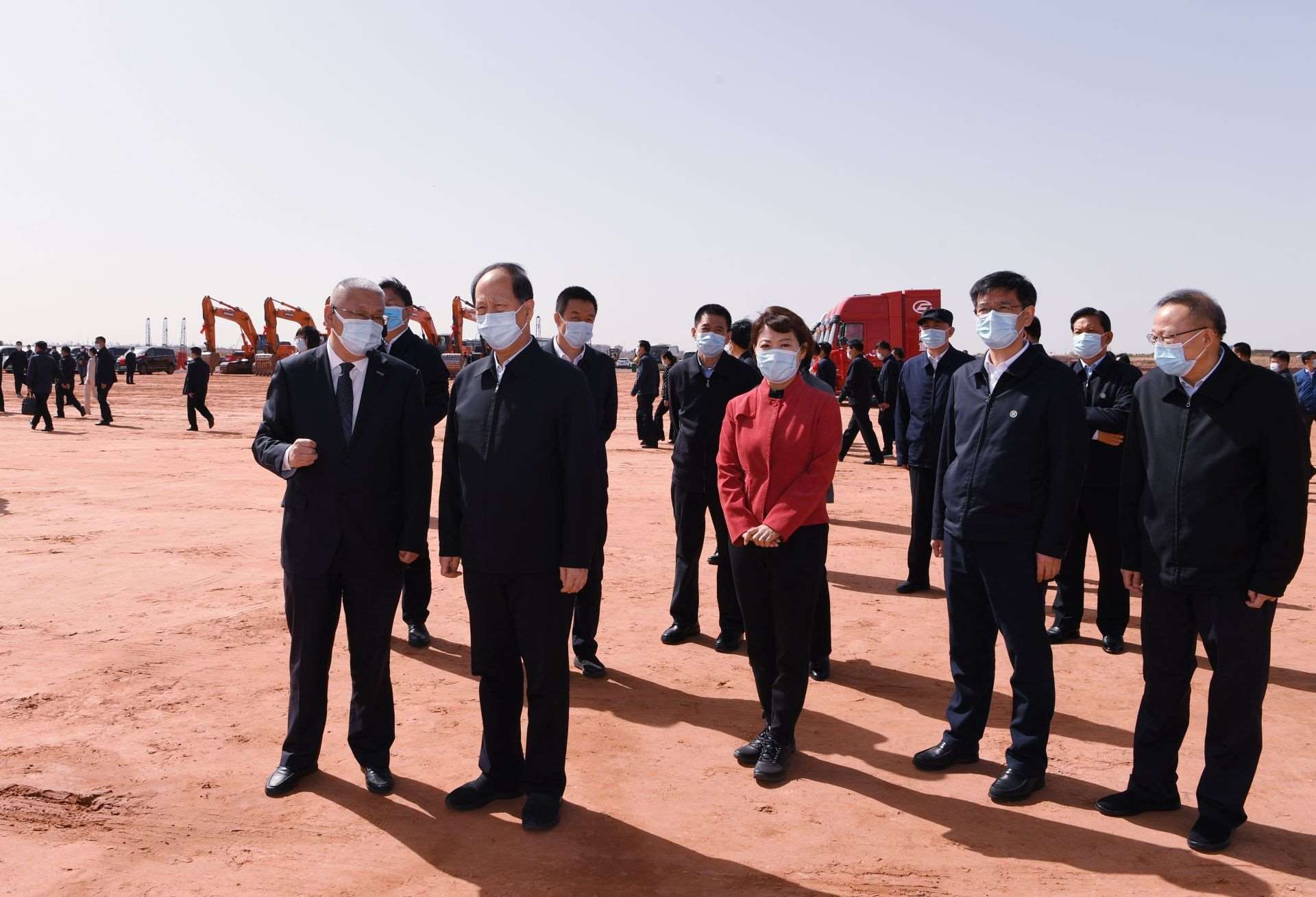 4月8日上午,自治區(qū)黨委書記、人大常委會(huì)主任石泰峰,自治區(qū)黨委副書記、自治區(qū)主席王莉霞出席鄂爾多斯市隆基光伏科技有限公司光伏全產(chǎn)業(yè)鏈項(xiàng)目奠基儀式。內(nèi)蒙古日?qǐng)?bào)社融媒體記者 袁永紅 攝