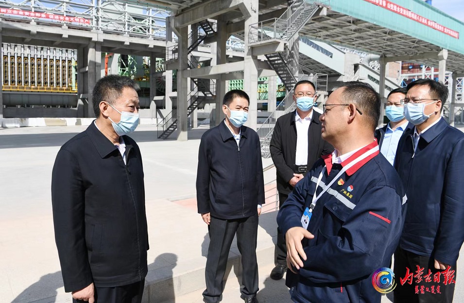 5月24日,自治區(qū)黨委書記孫紹騁來到烏海高新技術(shù)產(chǎn)業(yè)開發(fā)區(qū)低碳產(chǎn)業(yè)園,考察廣聚煤焦化聯(lián)產(chǎn)、甲醇及液氨項(xiàng)目建設(shè)情況。內(nèi)蒙古日?qǐng)?bào)社融媒體記者袁永紅攝