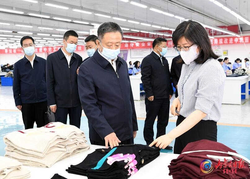 5月31日,自治區(qū)黨委書記孫紹騁來到鄂爾多斯高新技術(shù)產(chǎn)業(yè)開發(fā)區(qū)輕紡產(chǎn)業(yè)園,走進(jìn)鄂爾多斯集團(tuán)羊絨研發(fā)中心、生產(chǎn)車間和產(chǎn)品展廳,深入了解企業(yè)技術(shù)人才引進(jìn)、產(chǎn)品開發(fā)及生產(chǎn)經(jīng)營等情況。本報記者袁永紅攝
