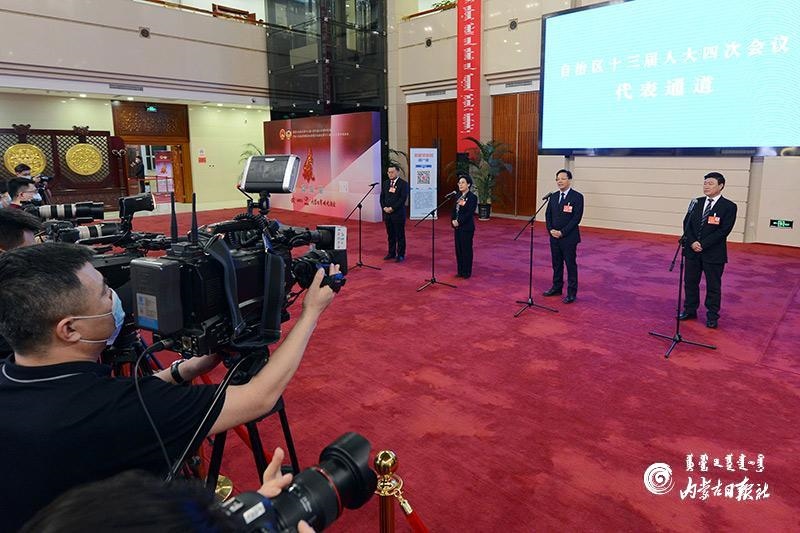 1月27日晚,自治區(qū)十三屆人大四次會議“代表通道”集中采訪活動在內(nèi)蒙古人民會堂玻璃廳舉行,8位人大代表分兩組“亮相”。這是自治區(qū)人大首次開通“代表通道”。內(nèi)蒙古日報記者 金泉 攝