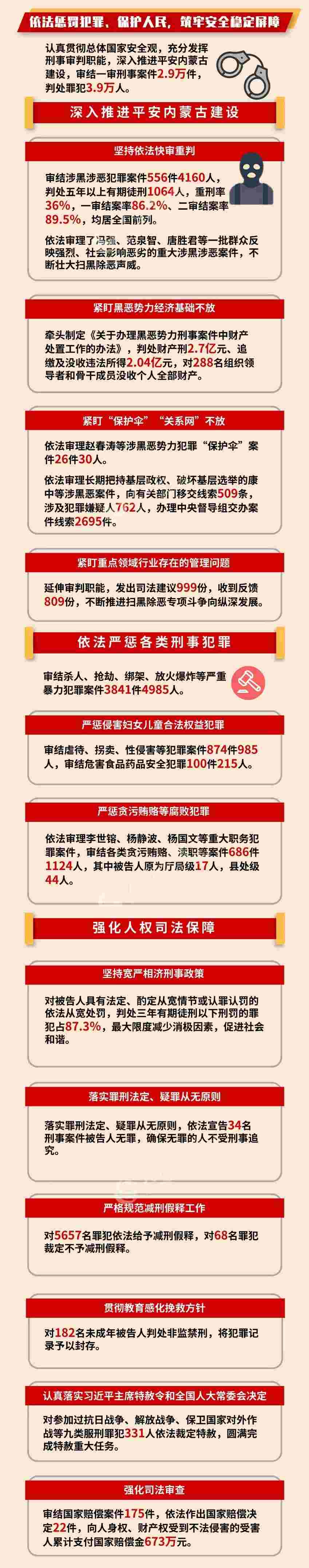 會(huì)上,內(nèi)蒙古自治區(qū)高級(jí)人民法院院長(zhǎng)楊宗仁作《內(nèi)蒙古自治區(qū)高級(jí)人民法院工作報(bào)告》,內(nèi)蒙古自治區(qū)人民檢察院檢察長(zhǎng)李琪林作《內(nèi)蒙古自治區(qū)人民檢察院工作報(bào)告》?!皟稍骸惫ぷ鲌?bào)告都有哪些看點(diǎn)?今年兩會(huì),小編繼續(xù)帶您看圖說(shuō)兩會(huì)。