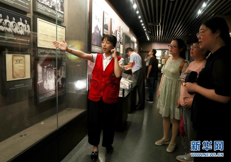 1月20日,“黨的誕生地”志愿服務(wù)隊(duì)隊(duì)員、上海大學(xué)的學(xué)生在中共一大會(huì)址紀(jì)念館為觀眾進(jìn)行講解(2019年6月22日攝)。新華社記者 劉穎 攝