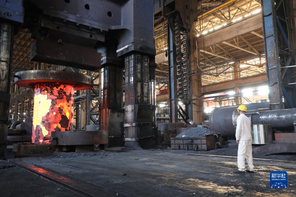 在中國一重集團有限公司,工人在車間內(nèi)忙碌(5月19日攝)。新華社記者 唐鐵富 攝