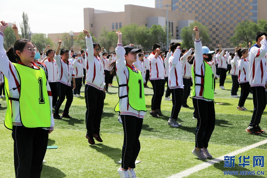 在緊張的備考狀態(tài)下,呼和浩特市第二中學(xué)加強對學(xué)生身體素質(zhì)訓(xùn)練,健康備考。新華網(wǎng) 李倩攝 -
