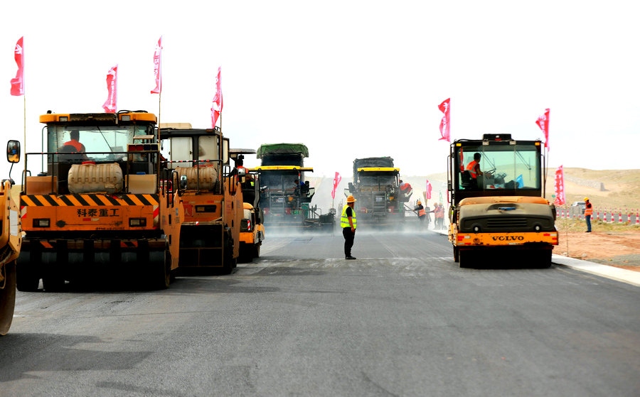 而在距此50KM之外的國道331線二連浩特至烏華放包段公路工程(二連浩特至艾勒格廟段),也正在同步施工中。